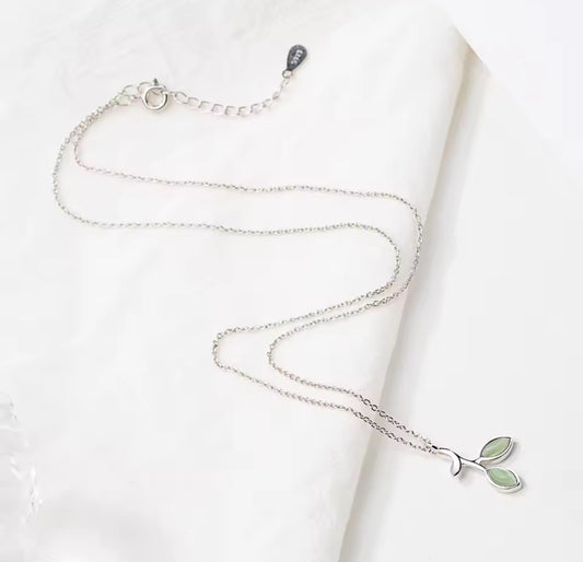 Green Olive Leaf Necklace & Bracelet